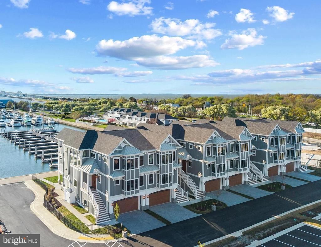 Welcome to Sunset Wharf, a refined waterfront enclave set within the picturesque Bay Bridge Marina, where coastal living is defined by sweeping views and effortless sophistication. This fully completed residence is one of just a select offering within the initial collection of three buildings, each thoughtfully designed with only two residences each, creating an intimate and private setting along the water’s edge. Inside, the home unfolds across three levels with a thoughtfully designed four bedroom, four bath layout that offers both flexibility and comfort. A private bedroom and full bath on the entry level provide the perfect space for guests or a quiet home office. The main living level is designed for seamless everyday living and entertaining, highlighted by a warm and inviting living room with a gas fireplace that adds both comfort and ambiance. The upper level features two additional bedroom suites, including a serene primary retreat complete with its own gas fireplace. An elegant touch that enhances the sense of relaxation and retreat. Expansive windows frame captivating views over the marina and out to the Chesapeake Bay, filling the home with natural light and creating an ever-changing backdrop of boating activity and open water. As the day winds down, the setting truly comes to life with breathtaking sunsets that paint the sky and reflect across the water. An experience to be enjoyed from both the interior living spaces and outdoor areas. High-end finishes and a modern, open-concept design elevate the interiors, while the beautifully appointed gourmet kitchen and well designed baths enhance both form and function. Every detail has been curated to deliver a low-maintenance, lock-and-go lifestyle without compromising on luxury. Ideally positioned within walking distance to waterfront dining, including Libbey’s Coastal Kitchen & Cocktails and Knoxie’s Table, residents also enjoy immediate access to marina amenities, scenic walking paths, and the relaxed rhythm of life on the Bay. Sunset Wharf offers a rare opportunity to own a newly completed residence in a thoughtfully designed waterfront community where every day feels like a getaway. Welcome Home!