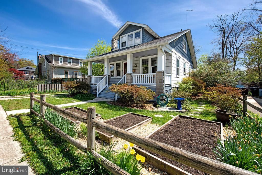 Absolutely classic Bungalow in the heart of hip, happening, historic Hyattsville! Welcoming front porch with a swing! Beautiful pine and oak floors, craftsman wood casings, a wood burning fireplace and more. Plenty of room to plant and play, plus a beautiful pergola to boot! Detached garage too; what a find! Living room with a lined fireplace & side light windows. Proper dining room with chair rail & moldings. Versatile front bedroom with floor to ceiling bookcase and French doors to the living room. Spacious south-facing kitchen with natural light from a skylight, windows and a sliding glass door. Back bedroom has access to the office with a built-in desk & bookcase overlooking the landscaped yard. The main level bath boasts a pedestal tub/shower. Upstairs, the landing is a room itself plus there's lots of under-eave storage. 2 Bedrooms with awesome walk-in closets plus a full shower bath. I love the front bedroom with the three windows across the dormer. All four bedrooms feature new Levolor blinds, with blackout blinds in the upstairs bedrooms and motorized blinds on the four front downstairs windows. Full unfinished basement has lots of built-in storage, a lovely laundry area with raised front loading washer and dryer with custom sink/work space and an exterior exit too. Landscaped lot with blooming azaleas, dogwood trees, a pergola with trained wisteria, raised beds ready for growing vegetables, and lots more room to plant and play. The garage is awesome with power, a built-in workshop and lighting - a great place to tinker and create! Plus there's more space under the kitchen addition to store bikes, mowers and equipment. Fabulous location just 2 blocks to Driskell Park with tennis/pickleball, basketball courts, bike paths and fields plus a children’s splash park! Near METRO and HVL Arts District shops & restaurants. You will love living here!