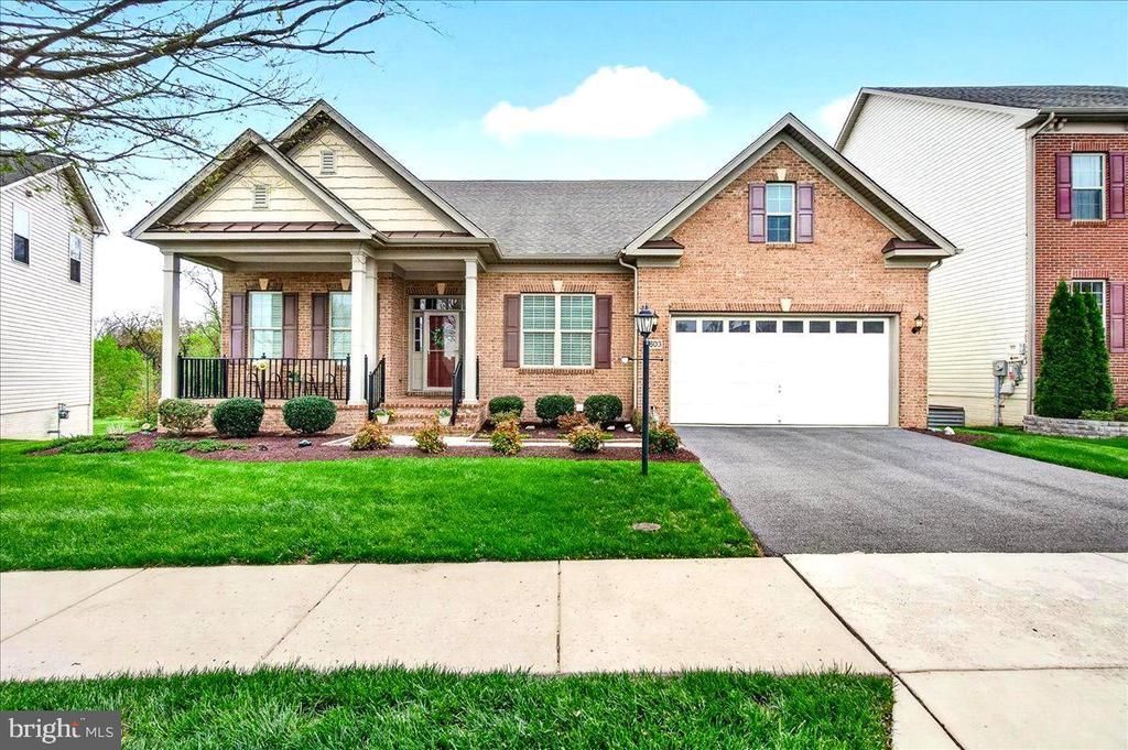 This stunning luxury ranch-style home located in the highly sought-after Landsdale community offers the very best in single-level living. Featuring 9-foot ceilings throughout, the home welcomes you with a gorgeous octagonal foyer, elegant crown moldings, and rich hardwood floors that set the tone for refined comfort. The gourmet kitchen is a true centerpiece, boasting a gas cooktop, double wall ovens, granite countertops, rich cabinetry, and an expansive island ideal for entertaining. It opens seamlessly into a light-filled, spacious living area with a cozy gas fireplace and direct access to a large composite deck. The primary suite is a private retreat complete with tray ceiling, a generous walk-in closet and a luxurious en-suite bath featuring a soaking tub, double vanities, and a walk-in shower. A lovely formal dining room, two additional bedrooms, a full hall bath with tub, comfortable office/den, a mud room leading to an attached two car garage and a convenient laundry room round out the main floor. A huge, finished walk-out lower level provides additional living space including a large recreation area, a fourth bedroom with walk-in closet, a full bath, a finished storage room, and a huge utility/storage area. Outdoor living is just as impressive, with a spacious composite deck overlooking a beautifully landscaped lot, an attractive paver patio, and a welcoming covered front porch all perfect for relaxing or entertaining. The Landsdale community provides excellent schools, beautiful resort style community pool, meeting rooms, multiple playgrounds, ball courts, walking paths and scenic ponds. Convenient to I-270, I-70, and amenities offered in thriving Urbana and Historic Frederick. Elegant ranchers like this one do not come on market often so don't miss out! Virtual staging used in some photos.