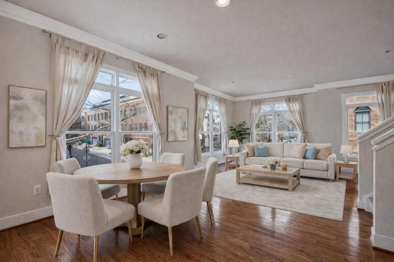 Light and bright End-Unit Townhome in the Heart of hip, happening Hyattsville! Perfectly situated on a peaceful courtyard in vibrant Arts District. With four spacious levels, this home blends warmth, style, and convenience in one of the area’s most desirable communities. Step inside to an inviting open layout featuring gleaming oak wood floors, nearly 9-foot ceilings, and sunny transom windows that fill the living and dining areas with natural light. The kitchen impresses with maple cabinetry, granite countertops, stainless steel appliances, a gas range, and a pantry that keeps everything organized. Each of the three bedrooms includes its own private ensuite bath! The primary suite overlooks the courtyard and features dual sinks, a large walk‑in shower with seat, and a generous walk‑in closet. The two secondary bedrooms offer tub/shower combinations with timeless tile surrounds. Upstairs, a loft-style top floor provides a flexible space for a home office, family room or lounge—plus access to a private balcony with stunning views. On the entry level, find an additional bedroom or office/den—ideal for remote work or guests. The attached garage offers easy parking and extra storage, with the benefit of end‑unit access. Live steps from some of the area’s best local favorites—Busboys and Poets, Franklin’s, and Yes! Organic Market—and enjoy the Trolley Trail connecting you to Town Center Market, Riviera Tapas, Manifest Bread, Whole Foods, Burtons, and more. Residents love the Lustine Gym, conveniently located across the courtyard— and the community pool - perfect for summer days and year‑round fitness. Stylish, spacious, and walkable—this stunning Arts District home offers the best of modern living in a location you’ll absolutely love.