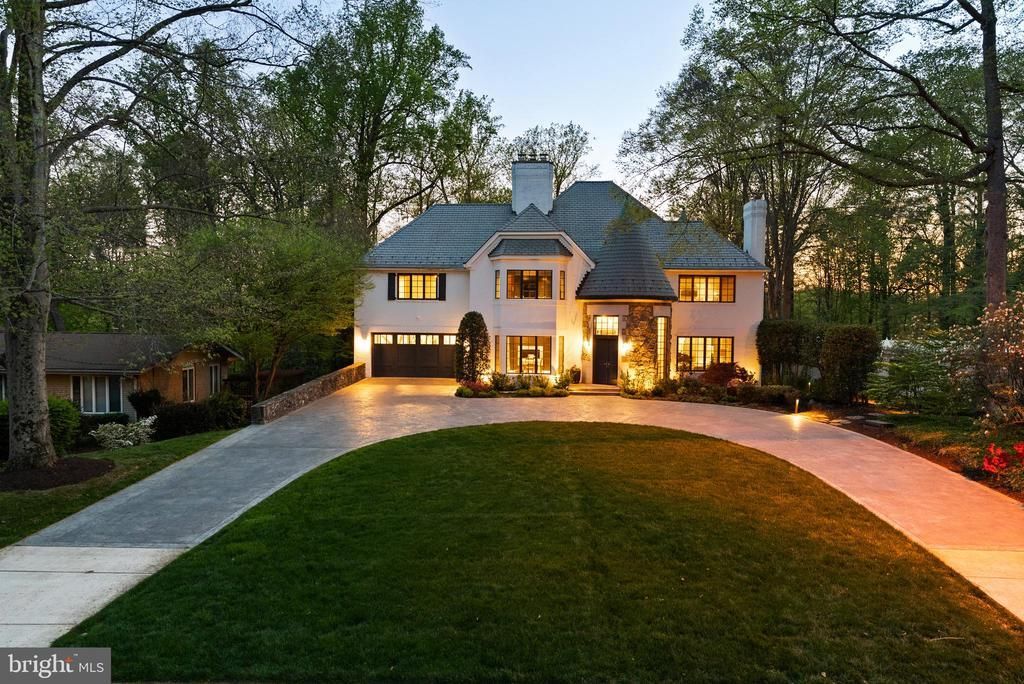Welcome to a truly exceptional, fully reimagined estate set on a private half-acre in the heart of Bannockburn Estates. Spanning over 7,300 square feet across four impeccably designed levels, this rare offering is a seamless expression of architectural presence, elevated design, and resort-caliber living. A painted brick exterior, slate roof, and two striking turrets establish a sense of timeless distinction—an arrival that feels both grand and enduring. With 5 bedrooms, 6.5 baths, and a dedicated office, the home is thoughtfully composed for both everyday living and sophisticated entertaining. Gracious proportions, curated materials, and a refined sense of flow create an environment that is as functional as it is beautiful, where each space unfolds with intention. The kitchen is a study in precision and performance—anchored by a full suite of Miele appliances, including built-in espresso and steam systems—paired with custom Bulthaup cabinetry that delivers a clean, architectural aesthetic. Leathered stone surfaces introduce warmth and tactile depth, while a Wolf gas range with integrated griddle ensures professional-grade capability. Every detail has been considered, resulting in a space that feels both effortless and exacting. The main level balances scale with intimacy. A formal dining room and elegant sitting room—each centered around a fireplace—set the tone for refined gatherings, while designer wall coverings and bespoke lighting lend richness throughout. A dedicated music room and private office provide moments of creativity and retreat. The home’s architectural character reveals itself in the circular turret foyer and the rear circular sitting room, where natural light enhances the home’s sculptural quality. Upstairs, four en-suite bedrooms offer exceptional comfort and privacy, anchored by a remarkable primary suite that lives as a true sanctuary. Multiple Poliform closets provide tailored storage, while a private sitting room with fireplace and wet bar creates an intimate, residential retreat within the home. The 2023 primary bath, designed by acclaimed DC designer Jo Ireland, is both serene and striking—featuring a sculptural soaking tub set within the turret, fluted wood detailing, and a spa-inspired atmosphere that elevates the everyday. Outdoors, the experience is equally compelling. Backing to mature trees, the grounds unfold into a private retreat designed for both relaxation and entertaining—featuring an infinity-edge pool with waterfall and hot tub, a stone-built Kalamazoo outdoor kitchen with integrated grill and Green Egg, and a full sport court. Retractable awnings extend the usability of the outdoor spaces, while irrigated garden beds add both beauty and purpose. A heated circular driveway and attached two-car garage with EV charging ensure ease in every season. Inside, hydronic heated floors run throughout, complemented by a fully integrated smart home system controlling lighting, shades, and audio/visual—quietly enhancing daily living with intuitive precision. The walk-out lower level continues the home’s lifestyle offering with a spacious recreation room, dedicated gym, golf simulator-ready space, full bath, and two temperature-controlled wine cellars—bringing both leisure and function into perfect alignment. Set among Bannockburn’s tree-lined streets and established estate homes, the location offers proximity to top-ranked schools, country clubs, parks, and major commuter routes—while preserving a sense of privacy and calm that feels worlds away. A residence of this scale and caliber is rarely available—thoughtfully executed, architecturally distinctive, and truly exceptional.